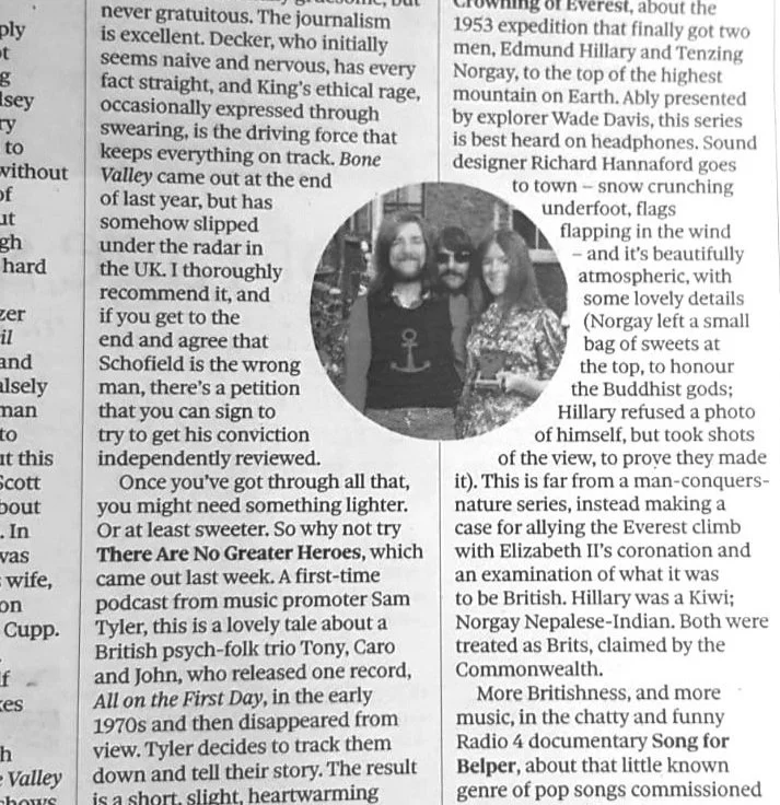 The Guardian review of the ‘There Are No Greater Heroes’ Podcast, created by The Incredible Society.